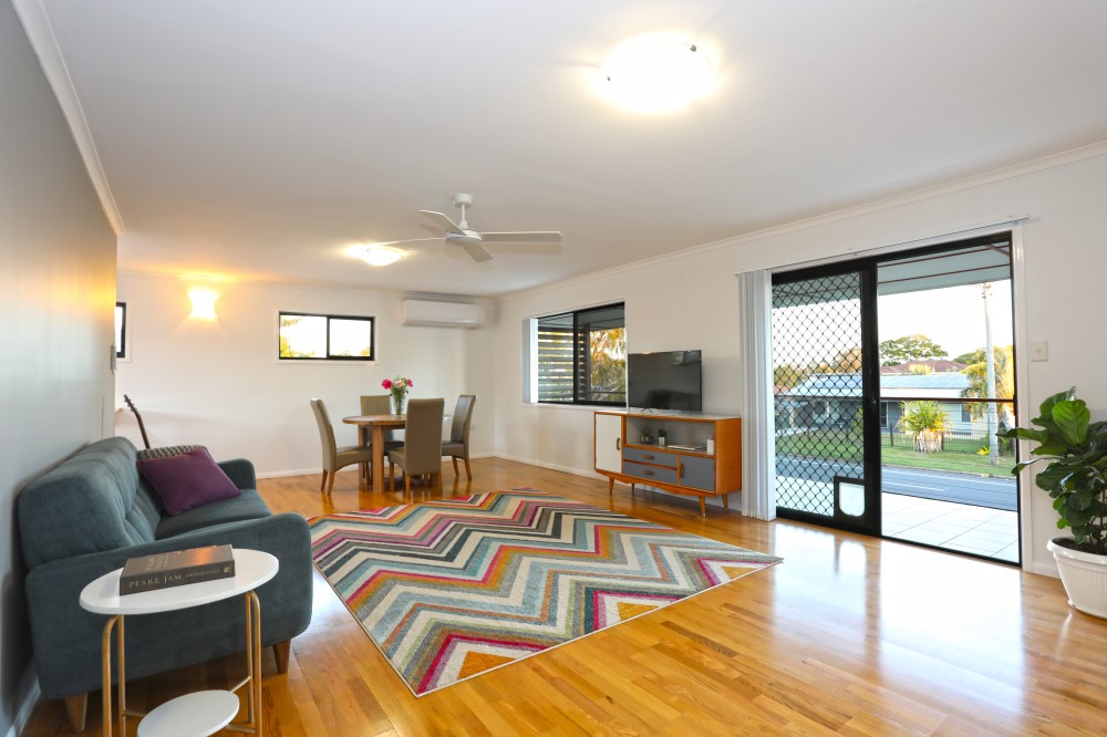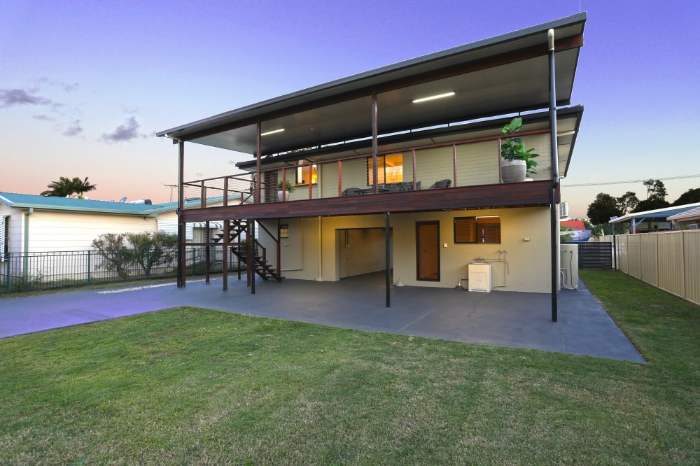 When it comes to homes that you can just pull up with the removalist truck and start unpacking without lifting a finger to renovate it, 127 Boronia Drive is it. Stylishly rejuvenated this dual living, high set home will impress the most particular of buyers. Centrally located close to public transport, the beach, shopping centres, schools, doctors, and the many activities that are available on Bribie Island, make this a location of convenience. The home has been thoughtfully designed to allow for its completely separate studio apartment on the lower level. Also on this level is the garage, a huge games room, or a space that would be the perfect home for a multitude of home base businesses (*STCA). As we venture upstairs there are three generous sized bedrooms all with robes and a luxurious bathroom that incorporates a spa bath. The kitchen is well appointed with ample cupboard and bench space, stainless steel appliances and a servery window that makes both outdoor and indoor dining a breeze. With a light filled lounge that opens out onto the balcony, it makes for a great spot to enjoy the morning paper with a cuppa. The rear deck is something that will have to be seen to believed, it is absolutely massive. A great place to enjoy the afternoon sun whilst writing a script about a stunning home or entertaining friends. To complete the package is and oversized shed, 6x9m with a 3m tall roller door (ideal for getting boats and caravans out of the weather) plus just when you think this home has it all, add a 3kw solar system, water tank, spear pump, Crimsafe security doors, LED lighting, ceiling fans, 4 split system air conditioners ( a whopping 7 kw system in the lounge), rear access to the reserve, and even with all this there is loads of room in the yard for a pool or your fury family members to run around. An inspection is a must, as this will surely impress.