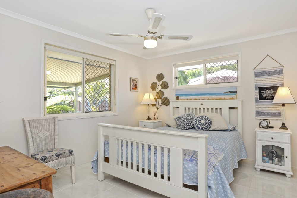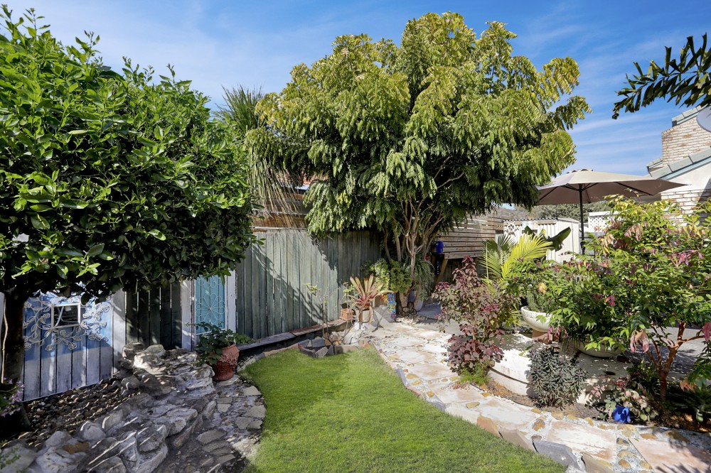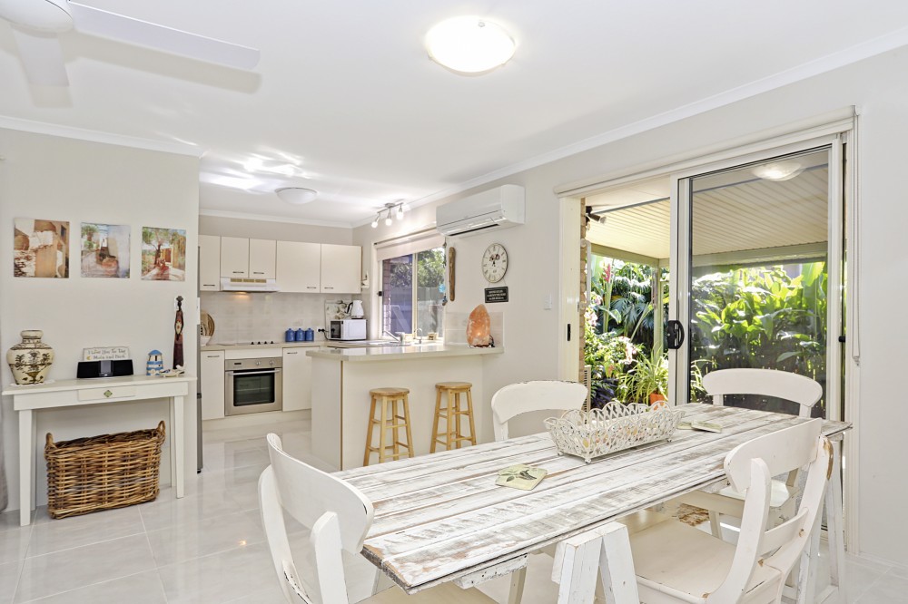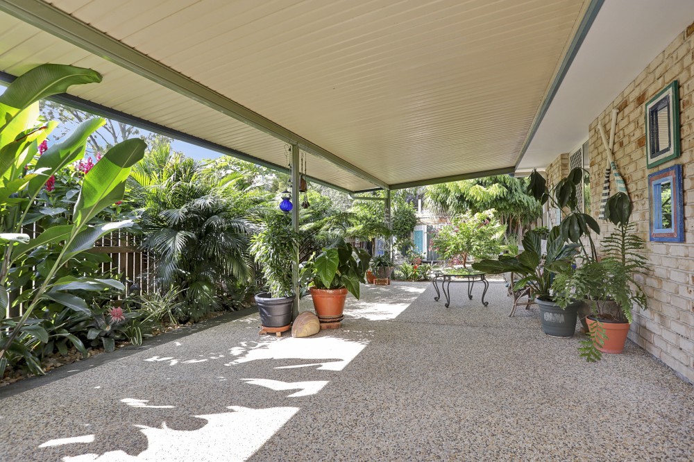 A generous & private L shaped North facing courtyard catches the sun in the winter and keeps you cool in the summer with a brilliant wide patio complimented by established tropical greenery. For extra storage & gardening tools there is a good-sized garden shed and extra paved areas surrounded by various fruit & herb trees and even an outdoor shower for after those beach trips.