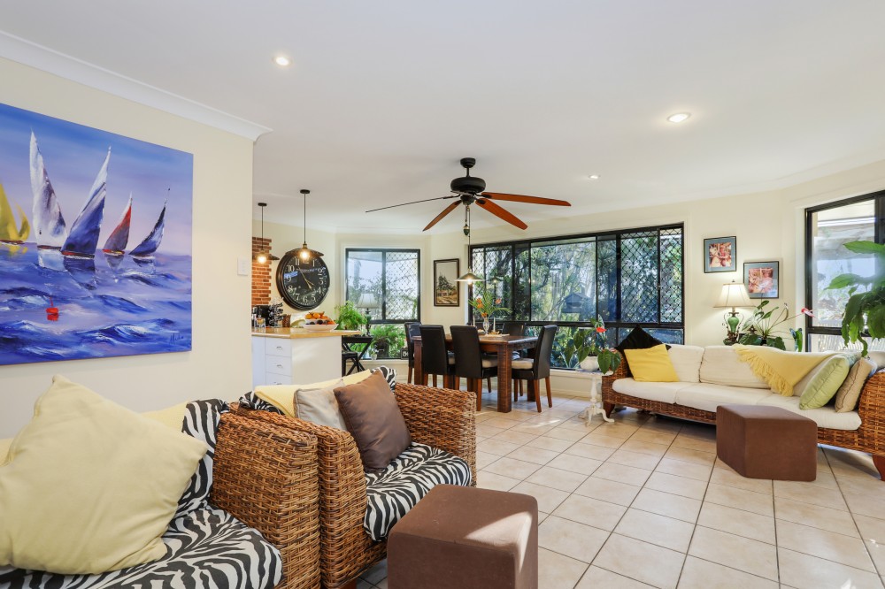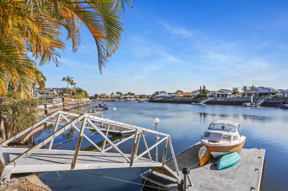 The rear garden is a tropical oasis that has the benefits of privacy in addition to being situated directly onto the canal. So sit in the outdoor entertaining area or swim in your in ground pool without being overlooked by neighbours.