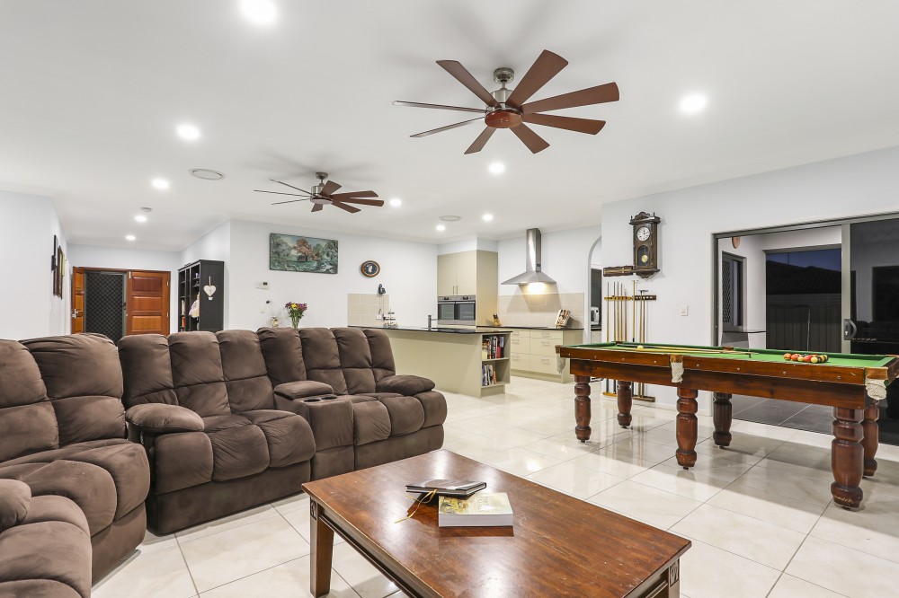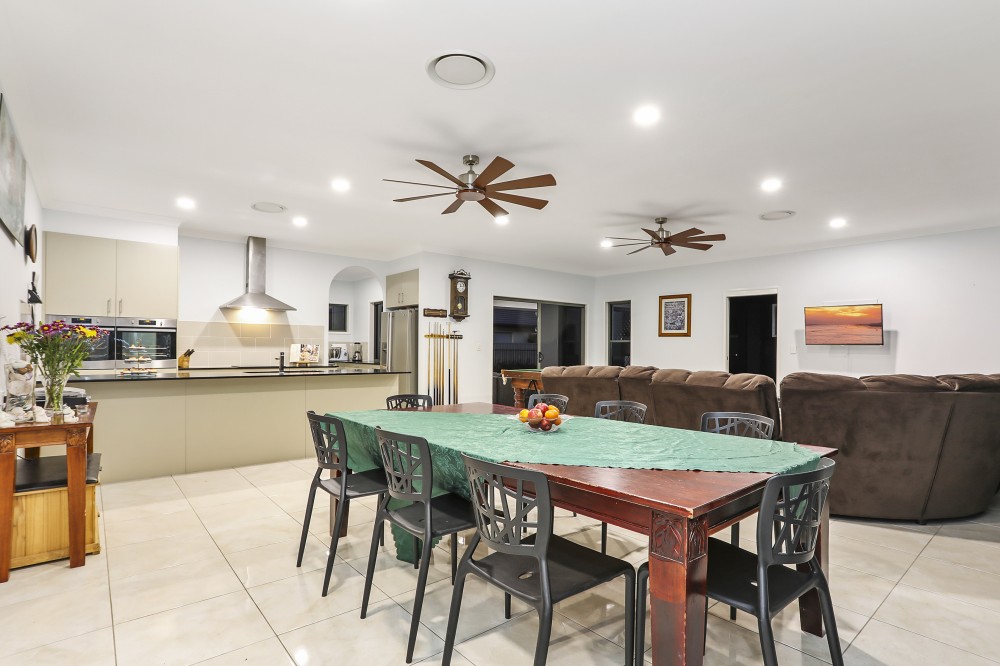 As you drive along The Landing, Banksia Beach you will be impressed with the quality homes and calibre of this estate. The home is a custom designed McLachlan home that has been well thought out with the family in mind. It features a centrally located entertainers kitchen with extensive bench and cupboard space and a to die for butlers pantry with a servery window to the alfresco area. The living zones are open and free flowing with the main lounge area extending through to the alfresco area making this area possible to entertain the whole football or bowls team. Add in your own personal cinema and study and you won't be the first person to think this is the life. The bedrooms are all generously proportioned with BIR's with the master suite featuring custom his and hers walk-in robes and a luxurious ensuite that will rival any five-star hotel. Now here is where the fun begins... The block is a battle-axe property that provides exclusive privacy on the 1033m allotment, that is divided into practical zones. There is the pool zone of all pool zones, a stunning 12metre lap pool ideal for anyone who loves their swimming or training for the next Olympics, a grassed area perfect for the kids to run around or bounce on the trampoline, and then there's the driveway area which you may love the access to the double garage and the separate carport that is ideal for boats and caravans, but the driveway is perfect for the battleground for the next suburban ashes! These days kids wouldn't know what its like to play cricket in the driveway, remember the battles we had as kids with all the neighbours and the use of that old taped up tennis ball. Add in all your creature comforts including air-conditioning, solar power, dishwasher, double ovens and you are bound to be impressed by this complete family package.