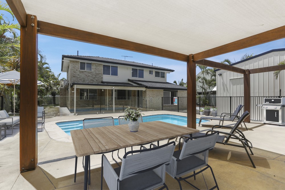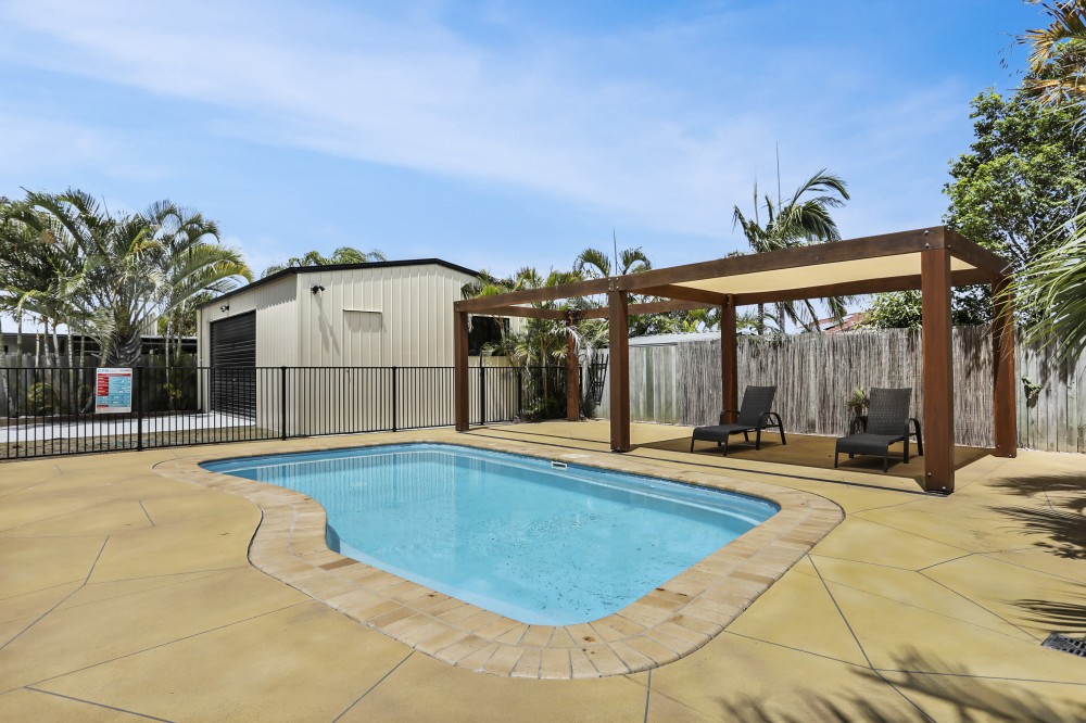 This grand, family sized steel framed home, in a sought after area in Banksia Beach, has the lot when it comes to spacious living or home business options.